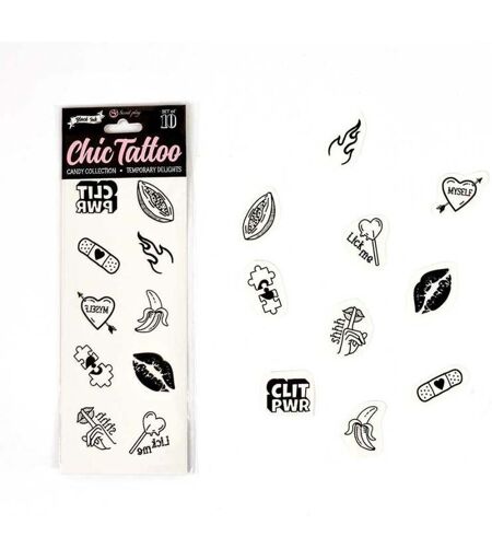 Vous aimez les tattoos mais vous avez peur de les regretter à l'avenir ? Voici la solution : le kit de 10 tatouages temporaires Candy Collection de Secret Play. Utilisez-les comme vous voulez et quand vous le voulez, par exemple lors d'un festival ou d'une soirée entre amis. Leur style sexy et coquin est parfait pour compléter votre look et vous amuser ! Utilisation : La peau doit être parfaitement propre et sèche. Découpez le motif de votre choix et retirez le papier transparent. Placez le tatouage face vers le bas sur la peau. Frottez fermement le dos du tatouage avec un chiffon ou une éponge humide pendant 10 à 20 secondes et soulevez délicatement le coin du tatouage pour vérifier s'il se transfère. Si c'est le cas, décollez doucement le papier. Si ce n'est pas le cas, appuyez sur le papier et mouillez-le à nouveau. Après avoir enlevé le papier, séchez le tatouage en tapotant. S'il est traité avec soin, votre tatouage durera plusieurs jours (3-7 jours). Utilisez de l'huile d'olive pour enlever le tatouage. ...