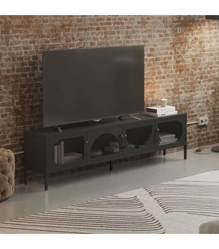 Drawer - Meuble tv 4 portes en métal L180cm - Noir - Zio