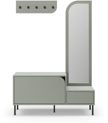 Drawer - Meuble d'entrée 2 portes avec miroir et portant en bois et métal H172cm - Vert amande - Silvar