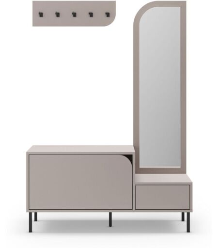 DRAWER Meuble d'entrée 2 portes avec miroir et portant en bois et métal H172cm - Beige - Silvar