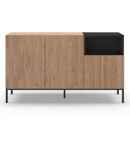 Drawer - Buffet 3 portes en bois et métal L140cm - Bois clair - Austin