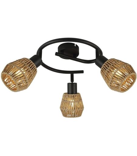 Plafonnier Krabi 3xE14 Le plafonnier Krabi 3xE14 est une option parfaite pour éclairer votre couloir ou une petite pièce avec une touche bohème chic. Avec trois lumières réglables individuellement, ce plafonnier offre polyvalence et style. Sa structure en métal noir et ses abat-jour en cordes de rotin lui confèrent un look moderne et élégant qui viendra compléter n'importe quelle décoration. Caractéristiques techniques : - Plafonnier Krabi trois lumières - Spots orientables individuellement - Structure en métal noir - Paravents en cordes de rotin - Nécessite 3 ampoules E14 (non fournies) - Dimensions : 30cm de diamètre et 20cm de hauteur - Poids : 1,5kg - Facile installation au plafond Avec le plafonnier Krabi 3xE14, vous pouvez ajouter une touche de style et de lumière à n'importe quel espace de votre maison. ...