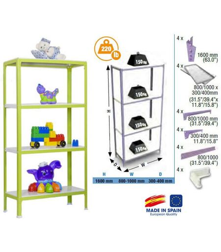 SIMONRACK Simon Rack - Etagère de rangement 1600x800x300mm Vert/Blanc Charge 150Kg - Homeclick Colour mini 4/300