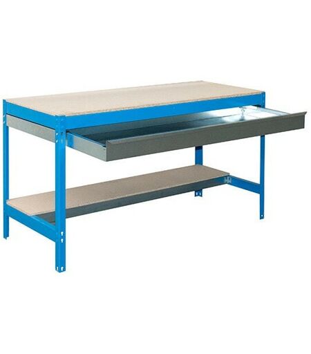 Etabli d'Atelier, Capacité de Charge 400 kg, 842x910x610 mm, Étagère Tiroir de Rangement, Table de Travail Bricolage, Bleu/Bois - Bt-0 - Simonrack