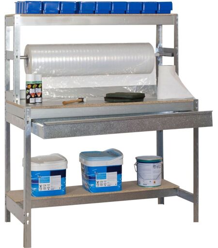 Etabli Table d'Emballage avec tiroir de rangement 1440x900x750mm galva 2 niveaux agglo 400kg en kit (BT-4 BOX 900) ...