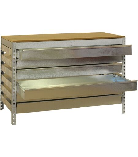 SIMONRACK Etabli d'Atelier, Capacité de Charge 600 kg, 842x1210x760 mm, 6 Étagère Tiroirs de Rangement, Table de Travail Bricolage, Galvanisé/Bois - Bt-5
