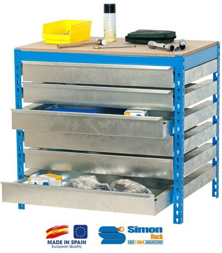 Simon Rack - Kit Etabli avec tiroirs 840x1200x750mm - BT-5 BOX6 1200 BLEU/BOIS