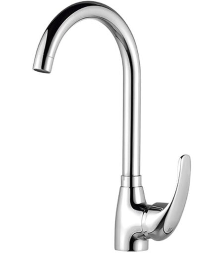 Mitigeur d'évier vertical Enkel 23603. Col de cygne-Céramique-347 x 175 x 258 mm-Finition chromée-750 g-Cartouche céramique 40 mm-Comprend : atomiseur en laiton M24/100. Raccords Flexitub UNE 53 626/2.. Vis de fixation en acier inoxydable ...