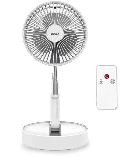 Ventilateur Silencieux Sans fil à Batterie Rechargeable usb blanc Pliable & Pied Télescopique Télécommande Autonomie 24h Jocca