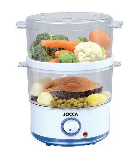 CUISEUR VAPEUR DOUBLE ETAGE 400 W JOCCA Minuteur 60 minutes Couvercle et bacs amovibles Deux hauteurs pour double capacité Maintient tous les vitamines de vos aliments ...