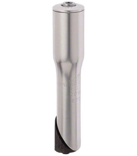 Le convertisseur de potence est la solution parfaite pour les vélos anciens qui nécessitent l'installation d'une potence ahead sans filetage de 1-1/8'' sur des fourches filetées de 1". Ce convertisseur est composé d'un corps de tube à section circulaire divisé en deux parties de diamètres différents, d'un bouchon de direction pour la fermeture supérieure, d'une longue vis avec une tête Allen A-6 mm et d'une cale de blocage inférieure pour fixer l'ensemble à l'intérieur du tube de direction de la fourche.Le convertisseur est compatible avec les fourches filetées ayant un diamètre extérieur de 1'' - 25.4 mm et un diamètre intérieur de 22.2 mm, tandis que les potences compatibles ont un diamètre pour la fourche de 1-1/8'' - 28.6 mm et sont sans filetage (threadless). Le petit diamètre du convertisseur est de 22,2 mm et le grand est de 28,6 mm (1" - 1.1/8").Fabriqué en aluminium forgé à froid, les vis sont en acier inoxydable et la cale de blocage est en acier. Le convertisseur est de couleur argentée avec une finition satinée qui le rend élégant et résistant. Ce convertisseur convient non seulement aux vélos classiques, mais également à une large gamme de vélos avec une fourche de 1", y compris les fixies, les single-speed ou les vélos de piste. ...