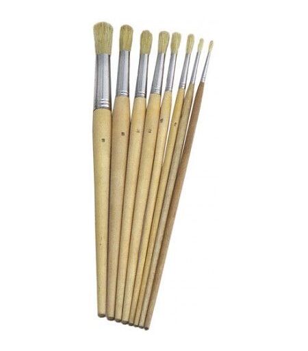 Pinceau Brico rond poils blancs. - Numéro : 1. - Poils blancs. - Manche en bois. - Article aussi appelé brosse plate, broche. ...