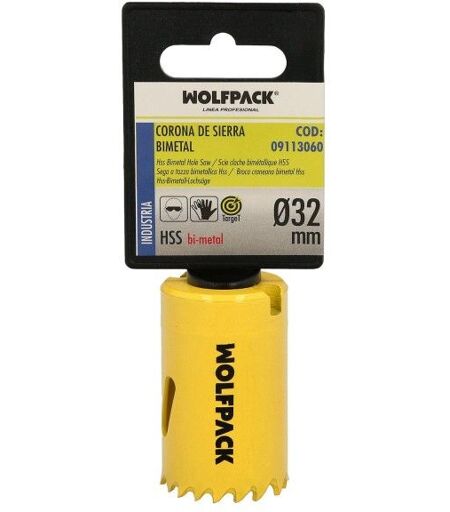 Corona De Sierra Bimetal Target - Medida: Ø 32 mm. - Realizado en una aleacion de alta dureza y resistencia al desgaste. - Dientes templados termicamente, por lo que le confiere una alta estabilidad a las aristas de corte. - Base de la corona reforzada. - Orificios laterales para la evacuación de virutas y una mejor refrigeración. - Ideal para hacer orifiios en madera, plastico, PVC. - Articulo conocido como broca madera, broca agujeros madera, sierra madera, sierra agujeros madera. ...