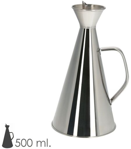 Aceitera Inoxidable Antigoteo 500ml. - Fabricada en Acero Inoxidable. Resistente y duradero. Contara en su cocina con un accesorio práctico y de larga vida útil. - Medidas: 10,2cm Ø base x 21,7cm Alto. Capacidad: 500ml. - Su especial boquilla hace que el aceite no gotee, y su tapón evita que se salga. Boca cónica para facilitar su llenado. - Para uso domestico y profesional. Elegante diseño que decorará su mesa. - Fácil de usar e ideal para dispensar aceite en sus ensaladas, comidas, cenas, desayunos, etc. Articulo tambien conocido como dispensador de aceite o alcuza. ...
