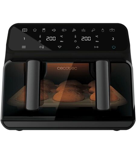 Cecotec Friteuse sans huile 9 L à air chaud Cecofry Dual 9000. 2850 W, numérique et compacte, double température, technologie PerfectCook, possibilité de diviser le seau de 4,5 L en 2, 6 modes