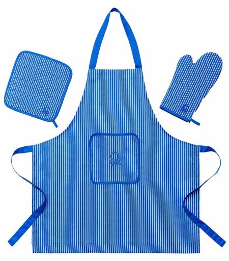 Casa Benetton 100 % coton 190 G/M2 tablier de cuisine, lot de gants et manique (3 pièces) bleu - Vert