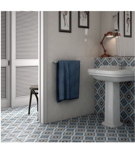 De la couleur uni au motif classique ou traditionnel en passant par des motifs orientaux ou bien des designs modernes, le grès cérame se met à l'heure du carreau ciment. Très tendance, il amène une touche d'authenticité et de fantaisie sur votre sol ou mur. Vous pouvez désormais opter pour une base grès cérame pour ce produit, l'avantage étant son caractère non poreux et son prix moins élevé que le carreau ciment traditionnel. Couleurs : beige, bleu, marron et crème Format : 20x20cm Épaisseur : 0,9cm Finition : Mat Effet : Carreau Ciment Coloré / motif losange Application : sol et mur / intérieur RECOMMANDATION : prévoir un volume de 10% ou 15% supplémentaire (pose droite ou diagonale) par rapport à votre surface pour les pertes liées aux coupes et au calepinage. ...