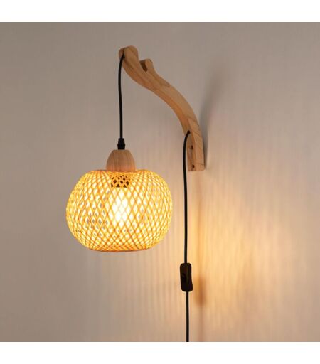 BARCELONA LED Applique murale en osier et bois "Phuket" - Avec câble et prise boho chic