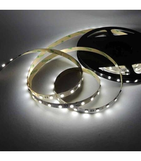 Ruban LED 12V 72W, 300 SMD5050, Bobine de 5 mètre, IP20, angle 120º, Unicolore, sécable tous les 5cm Ruban LED très flexible pour une installation qui s'adapte à tous vos besoins. Degré d'imperméabilité IP20 > Comment choisir le ruban selon la classification IP Auto-adhésif (3M sur la partie postérieure). Grande brillance et luminosité. L'électronique n'est pas recouverte de couche protectrice dans la version IP20. Alimentation requise , et selon la source d'alimentation utilisée, un connecteur DC est également nécessaire. (vendu séparément) ...