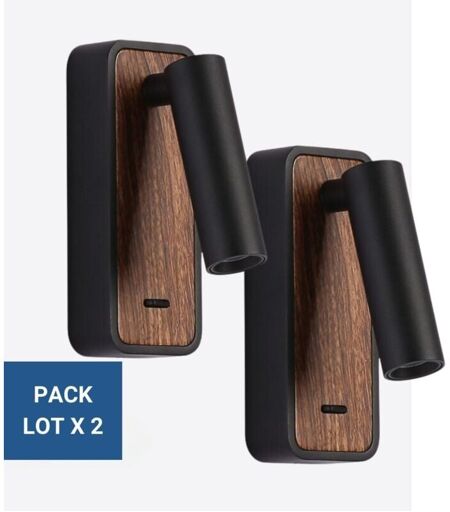 Lot de 2 liseuses orientables "Irène" - Noir Cette applique de lecture au design contemporain se distingue par sa fabrication en aluminium. Sa structure centrale arbore une finition en bois agrémentée de détails noirs , ajoutant une touche esthétique subtile. Équipée d'un spot réglable de 3W , cette liseuse offre une flexibilité d'orientation latérale, ainsi que vers le haut et le bas, assurant un éclairage précis et ciblé, parfait pour la lecture. Conçue spécialement pour s'intégrer harmonieusement dans les têtes de lit, que ce soit dans un cadre domestique ou dans des établissements hôteliers, elle se révèle également adaptée aux espaces professionnels tels que les bureaux, les cabinets médicaux ou les zones de réception. Son montage est extrêmement aisé, se fixant simplement au mur à l'aide de vis après avoir effectué les connexions électriques nécessaires. Dotée de puces LED CREE de première qualité, cette applique émet une lumière blanc chaud (2700K) avec un angle d'ouverture de ...