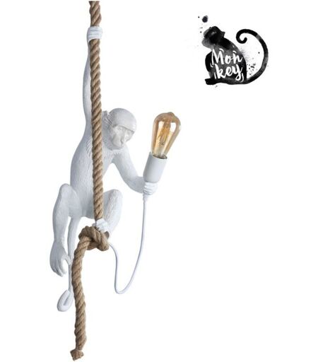 Suspension design singe en résine "Ximpa" La lampe suspendue singe en résine de haute qualité va bien au-delà d'être une simple source de lumière : c'est une véritable pièce décorative d'une grande originalité qui éveillera la curiosité et ajoutera une touche de fantaisie à votre espace intérieur. Le singe tient l'ampoule de manière charmante tout en grimpant sur une corde, créant ainsi une scène animée et unique qui ne manquera pas de faire sourire et d'émerveiller vos invités. Sa conception artistique et ludique en fait un véritable attrait dans votre maison ou votre bureau, attirant les regards et suscitant les conversations. Cette suspension s'installe au plafond grâce à une rosace centrale à partir de laquelle la corde et le câble électrique sont maintenus, créant ainsi un effet saisissant. La suspension est équipée d'une douille qui accepte une ampoule E27 d'une puissance maximale de 60W, vous offrant ainsi la possibilité de régler l'intensité lumineuse selon vos besoins et vos ...