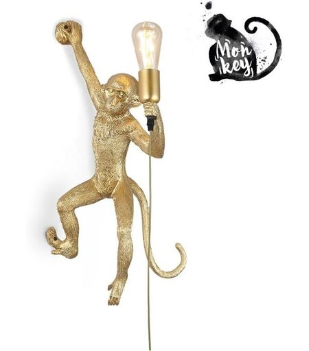 Applique murale design singe en résine "César" Cette applique murale singe en résine de haute qualité va bien au-delà d'être une simple source de lumière : c'est une véritable pièce décorative d'une grande originalité qui éveillera la curiosité et ajoutera une touche de fantaisie à votre espace intérieur. Le singe tient l'ampoule de manière charmante, créant ainsi une scène animée et unique qui ne manquera pas de faire sourire et d'émerveiller vos invités. Sa conception artistique et ludique en fait un véritable attrait dans votre maison ou votre bureau, attirant les regards et suscitant les conversations. L’installation de cette applique est extrêmement simple : il vous suffit de la fixer au mur à l'aide de deux vis, et voilà, elle devient la pièce maîtresse de votre décoration ! La lampe est équipée d'une douille qui accepte une ampoule E27 d'une puissance maximale de 60W, vous offrant ainsi la possibilité de régler l'intensité lumineuse selon vos besoins et vos préférences. ...