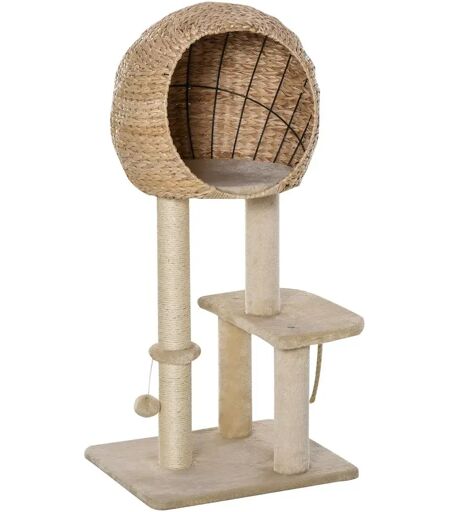 Pawhut – maison d'arbre à gratter pour chat, balle et corde de jeu, poteau en Sisal ...