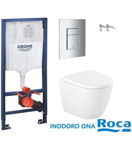 Pack Bati-Support réservoir Encastrable et plaque chrome avec wc suspendu Roca Ona Blanc 48 cm - Grohe