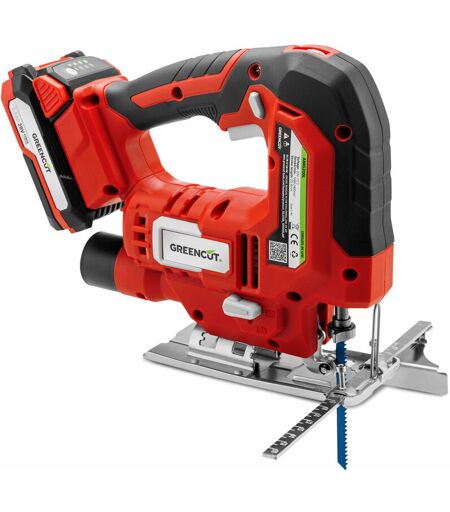 Scie sauteuse 20V, batterie lithium 2.0Ah, 4 positions de lame, vitesse réglable et profondeur de coupe jusqu'à 65 mm – Greencut SRJ200L