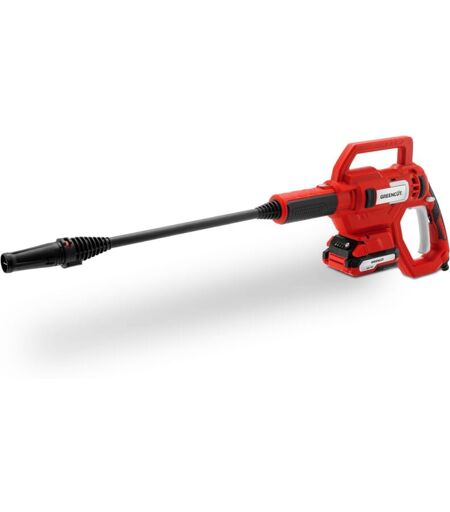 Nettoyeur haute pression portable 20V, débit max. 2.5L/min, pression de travail 25Bar, avec batterie lithium 2.0Ah et chargeur inclus – Greencut