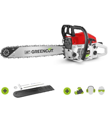 Greencut - Tronçonneuse à essence 65cc 3,8cv, moteur 2 temps, lame 20', longueur de coupe 50,8cm, abattage, 5,65kg, avec fourreau GS650X