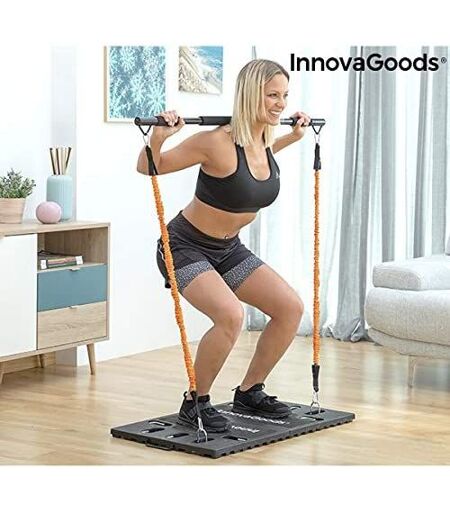 GYM A LA MAISON V103087 Système d'entraînement Complet Portable avec Guide d'exercices Gympak Max-Fitness, Gym à la Maison, Adultes Unisexe: Un appareil d'entraînement très complet permettant d'effectuer une multitude d'exercices avec les différents accessoires. Idéal pour tous les exercices effectués par les diverses parties du corps (torse, bras, jambes et dos). Grâce à sa conception compacte et portable, la base se plie en deux par le milieu pour faciliter le transport et le rangement, ce qui permet de le ranger dans la voiture, dans l'armoire, sous le lit, etc. Un sac résistant est également fourni pour transporter facilement tous les accessoires inclus. Le guide d'exercices permet d'atteindre les meilleurs résultats. Matériel: Acier alliage métallique ABS Caoutchouc Mousse Conception portable Type: Compact Base antidérapante pliable avec poignée: 51 x 87 x 3 cm 51 x 46 x 5 cm Niveau de résistance: Réglable Accessoires: 2 barres amovibles 4 bandes de résistance 2 poignées d'accroche 2 sangles pour extrémités 1 ancrage de porte Inclut: Guide d'exercices Sac de Transport Utilisation pratique et simple Facile à transporter et à ranger Base antidérapante pliable avec poignée. 4 bandes de résistance. 2 barres amovibles. 2 poignées 2 sangles pour les membres. 1 x ancrage de porte. Sac de transport. Niveau de résistance réglable. Design portable. Type : compact. ...