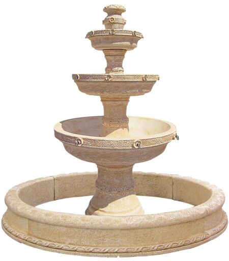 Anaparra - Fontaine de jardin gran adhara 117x220cm. + cerco 274x30cm. pierre reconstituée couleur Ocre clôture naturel.