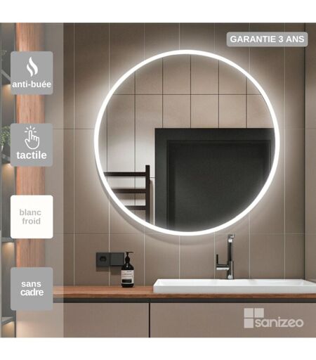 LEDIMEX Miroir Salle de Bains Lumineux LONDRES Anti-Buée et Éclairage Frontal et Rétro-Éclairé Tactile On/Off Ø60 by SANIZÉO
