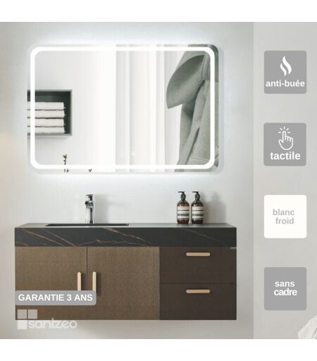 Ledimex - Miroir Salle de Bains Lumineux grecia Anti-Buée et Éclairage Frontal et Rétro-Éclairé Tactile On/Off 100x80 by sanizéo