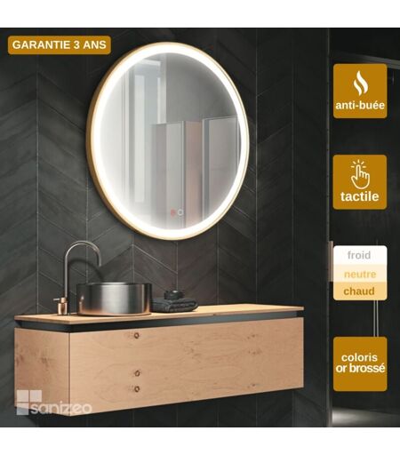 Ledimex - Miroir Salle de Bains Lumineux paris Anti-Buée et Éclairage Frontal Triled Tactile On/Off Ø70 Or Brossé by sanizéo