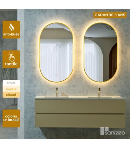 Ledimex - Miroir Salle de Bains Lumineux tokyo Anti-Buée et Éclairage Triled Tactile On/Off Finition Or Brossé 50x90 by sanizéo