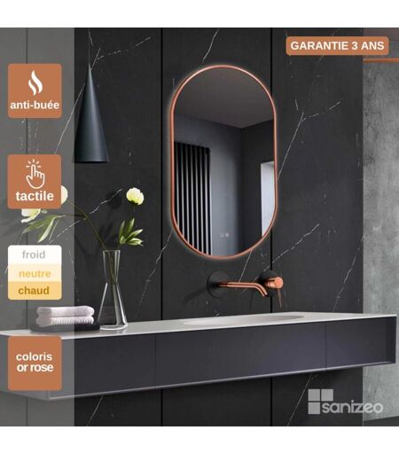 LEDIMEX Miroir Salle de Bains Lumineux TOKYO Anti-Buée et Éclairage Triled Tactile On/Off Finition Or Rosé 50x90 by SANIZÉO