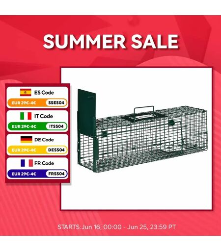 Piège à animaux vivants Outsunny avec porte pour petits lapins 60X18X20 cm ...