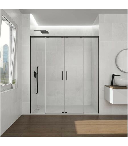 Ouverture centrale Soft Close avec portes coulissantes Profilés en aluminium noir mat Hauteur 195 cm Verre trempé de 6 mm d'épaisseur Installation réversible et facile Traitement anticalcaire standard sur les cristaux SYSTÈME D'OUVERTURE ET DE FERMETURE Fermeture au joint aimanté et de profilé mural pour une bonne étanchéité, en plus des caoutchoucs de solin verticaux entre fixe et coulissant. INSTALLATION L'écran est livré pré-assemblé avec un manuel d'installation. Pour adapter la portée à notre écart de lumière nous devrons couper le guide supérieur. GARANTIE Tous les produits ont une période de garantie de 3 ans . Cette garantie couvre les éventuels défauts de fabrication. EXPÉDITION La paroi de douche sera transportée par CEVA , une agence qui garantit la livraison dans un délai moyen de livraison de 7 à 14 jours dans toute la France (la livraison est incluse jusqu'au pied de l'immeuble ou devant la maison, le transporteur ne télécharge en aucun cas la marchandise à l'adresse). ...