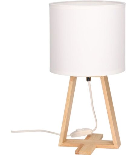 Lampe de table nordique Forlight Nuts pour la chambre à coucher et le salon. Lampe de chevet en bois naturel et textile blanc pour la chambre à