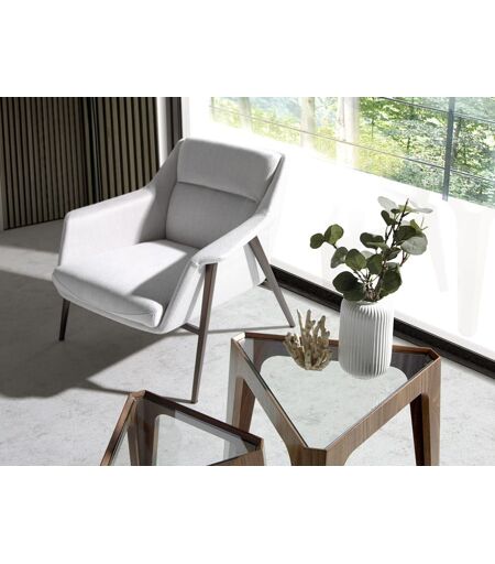 Fauteuil Tissu Blanc Et Pieds Acier Brun