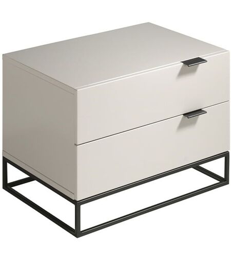 Table de chevet en MDF laqué Gloss Pearl Grey, structure et pieds en acier peint époxy noir et deux tiroirs. ...