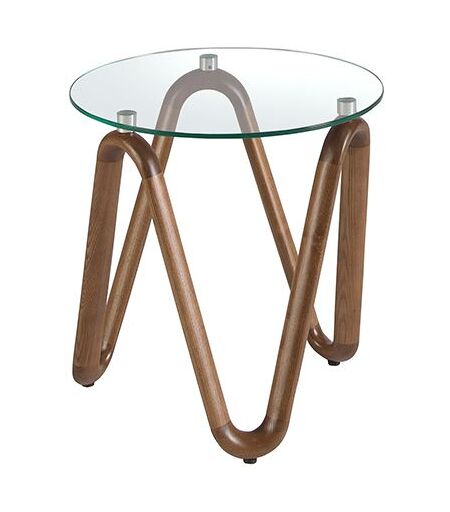 Angel Cerdá Table D'angle Ronde En Verre Trempé Et Noyer