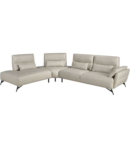 Canapé d'angle 5 places gauche au design moderne, revêtu de cuir de vachette couleur sable. Ce canapé, tant par son style que par ses pieds en acier inoxydable noir, apportera la touche d'avant-garde et d'élégance que vous recherchez dans votre intérieur. ...