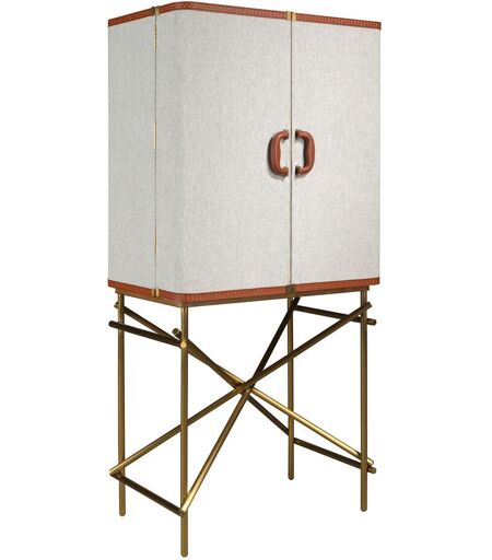 Angel Cerdá Buffet Haut, Tissu, Noyer Et Acier Poli Doré