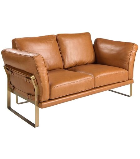 Canapé 2 places au design moderne, revêtu de cuir de vachette couleur camel. Tant par son style que par ses pieds en acier inoxydable doré, ce canapé apportera la touche d'avant-garde et d'élégance que vous recherchez dans votre intérieur. ...