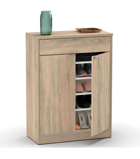 Briebe - Domus Meuble à Chaussures Entrée, Meuble Rangement 2 Portes Tiroir 101x75x36cm Bois