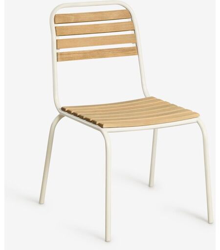 Sklum Pack De 4 Chaises De Salle À Manger Empilables En Acier Et Bois D'acacia Artus Blanc Gardenia