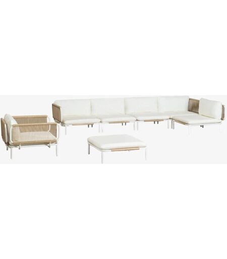 Sklum Canapé D'angle De Jardin Modulable 5 Pièces Avec Pouf Et Fauteuil Roubly Beige Amande